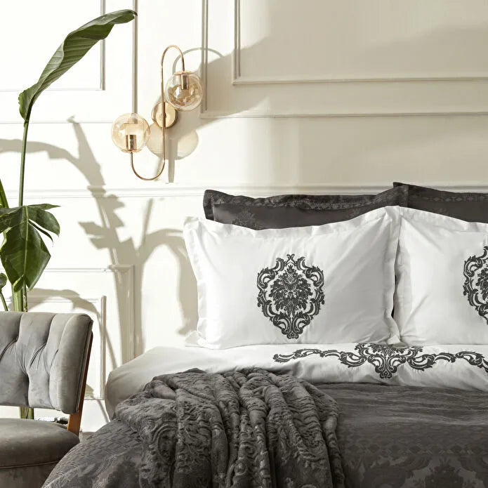 Karaca Home Uniq 100% Baumwolle Satin Doppel Bettbezug-Set, Anthrazit