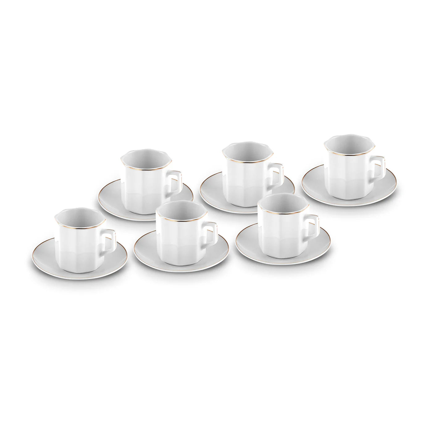 The set consists of 6 espresso-Türkische Kaffeetassen, each with a capacity of 80 ml, and 6 matching untertassen. Crafted from fine bone china, the cups and saucers boast a smooth, glossy finish that exudes durability and lightweight elegance.