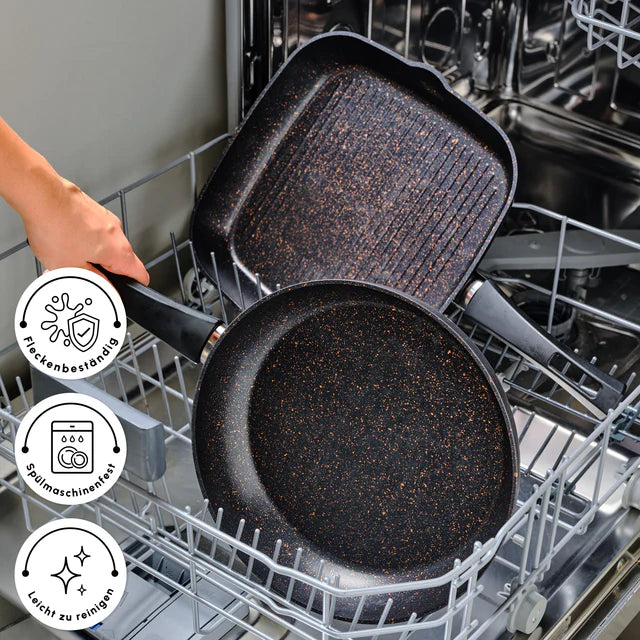 One of the key features of this set is its non – stick coating, which is smooth and easy to clean. You can even put these pans in the dishwasher, as proven by the “Spülmaschinenfest” label. The coating is also scratch – resistant, and the 3.7 mm thick body ensures durability. The heat – resistant handles are safe for stovetop use, and while not explicitly stated, they are likely oven – safe as well.