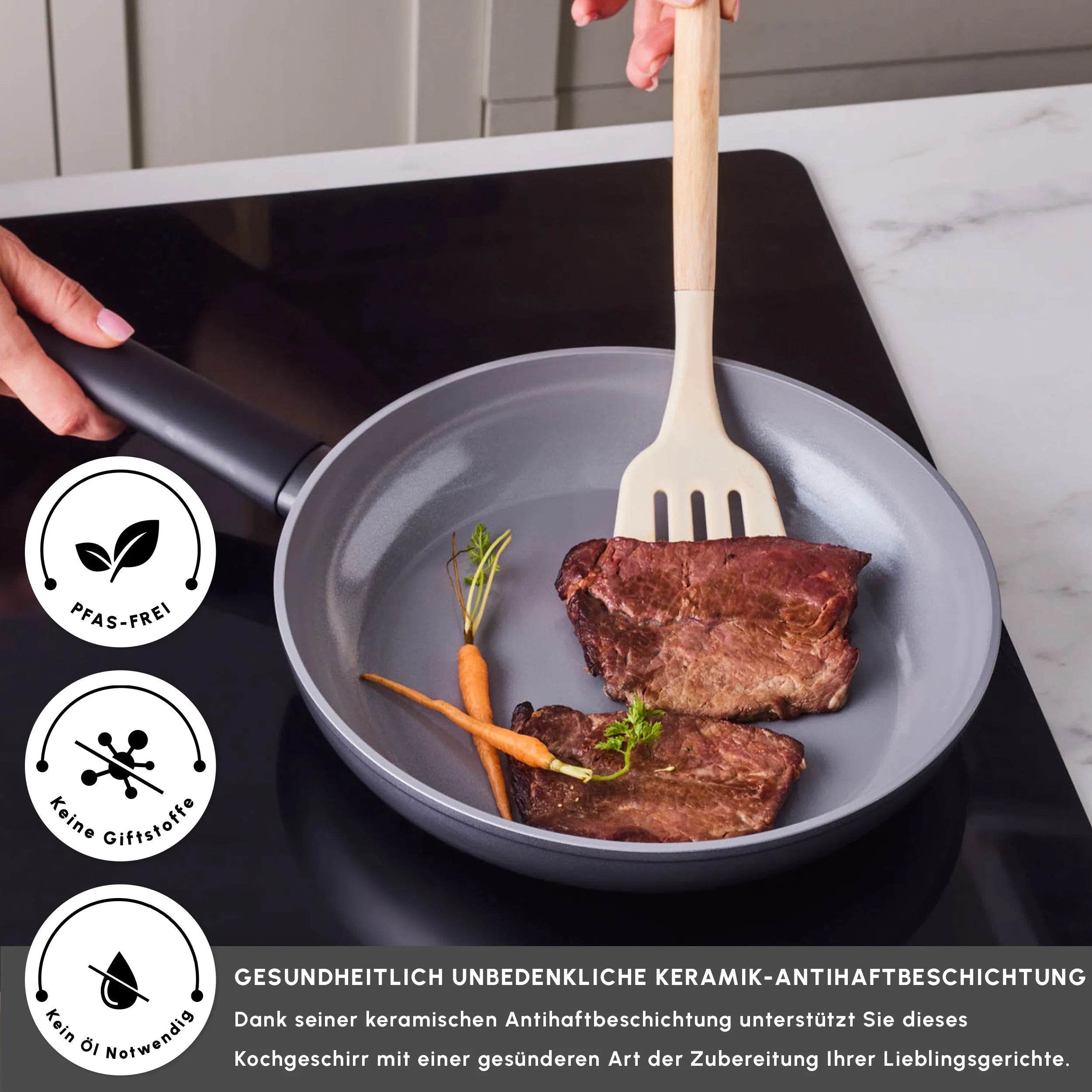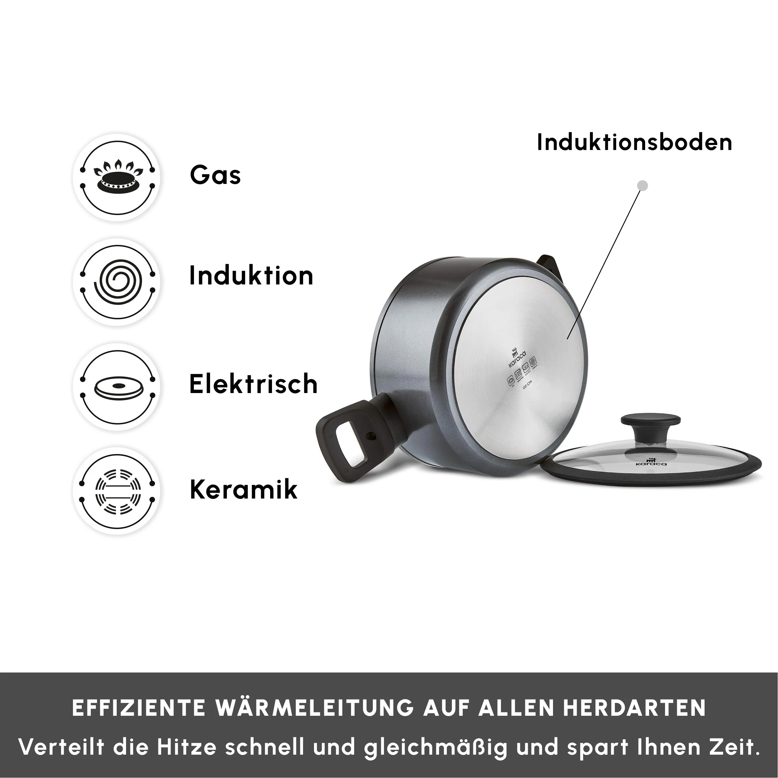 Karaca Ceramica Iconic Grau, 7-teiliges Kochgeschirr-Set, Induktion, Grau