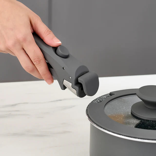 One of the standout features of this set is its stackable design. The pots and pan can be nested together, which maximizes storage space and reduces cabinet clutter. The detachable handle is a universal fit for all the cookware in the set. It can be easily removed for oven use or when you want to clean it in the dishwasher. This set is oven – safe, suitable for use at typical oven temperatures, and is also compatible with stovetops (both gas and induction). Cleaning is a breeze as it is dishwasher – safe, and the non – stick coating significantly reduces the need for scrubbing. Plus, it is highly scratch – resistant, ensuring long – term durability.
