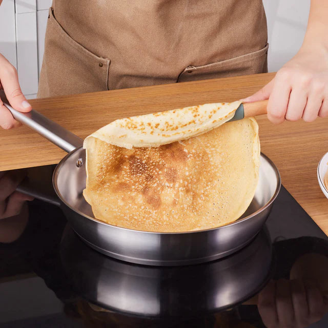 This medium – sized pan (26 cm in diameter) is perfect for cooking flat, delicate items like pancakes and crepes, as well as for sautéing, frying, or baking if it’s oven – safe (a common feature of stainless steel pans). It’s ideal for individual servings or small batches, balancing functionality and storage efficiency.