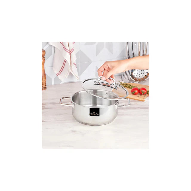 | Features | Glass lid for real – time monitoring, ergonomic handles, stainless steel construction, even heat distribution |