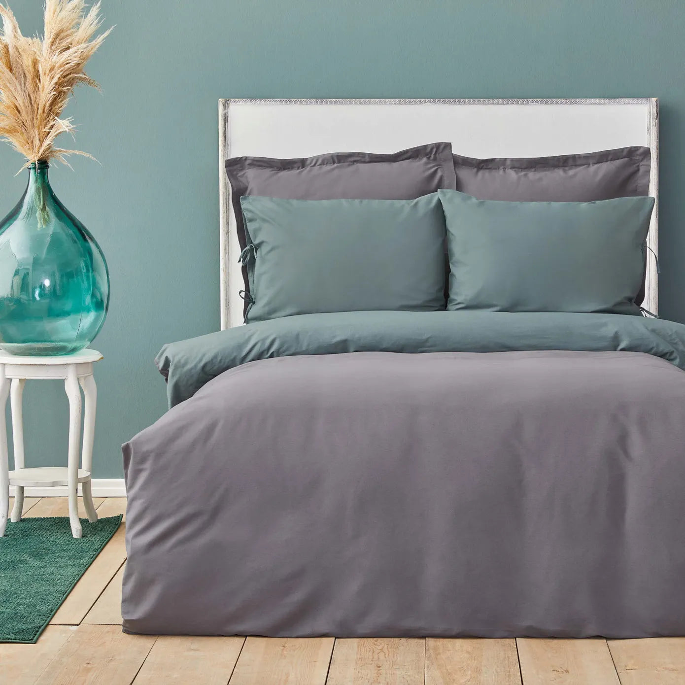 One of the standout features of this set is its reversible design. The duvet cover offers two solid, muted tones: a sophisticated gray (charcoal) shade on one side and a calming teal/blue – green shade on the other. This allows you to effortlessly switch up the look of your bedroom to match your mood or the changing seasons.