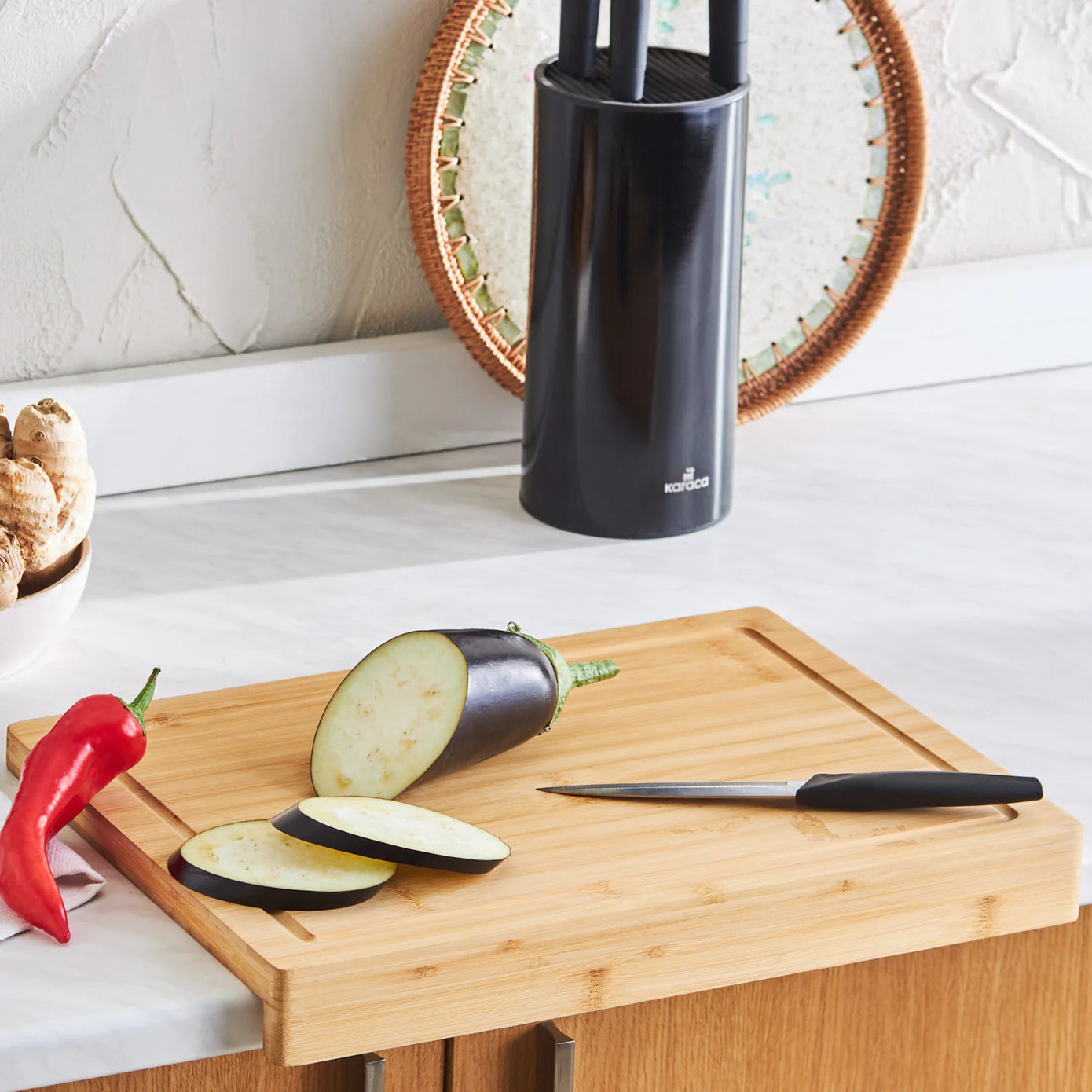 Introducing the Karaca Lalin Schneidebrett für die Arbeitsplatte, a top – notch kitchen essential that combines functionality and style. This product is a bamboo cutting board set, which also comes with a small utility/paring knife, perfect for all your food preparation needs.