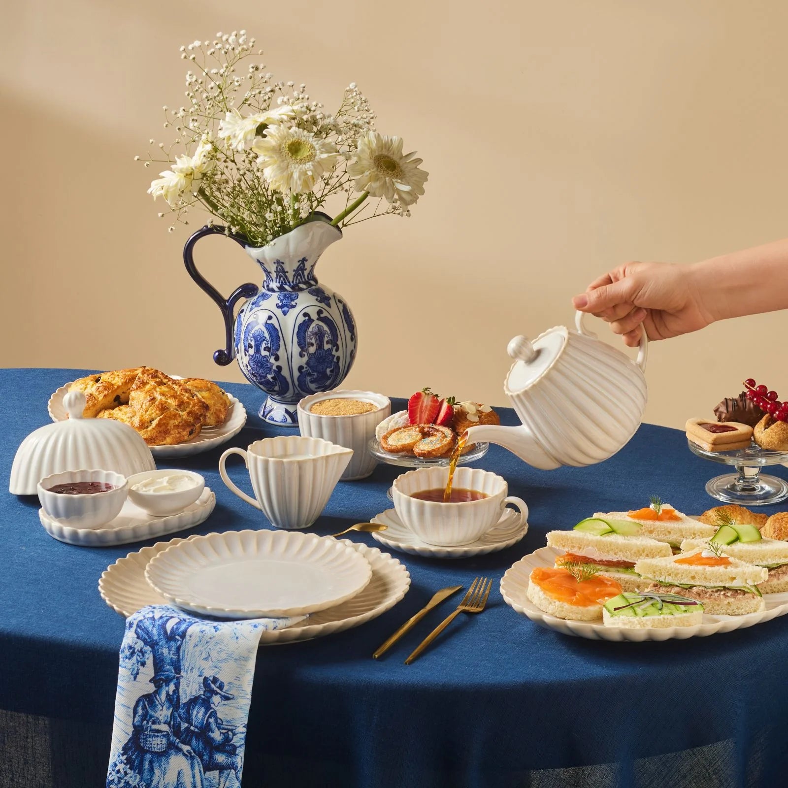 | Features | Decorative fluting, scalloped rim, functional handle, food – safe glaze |