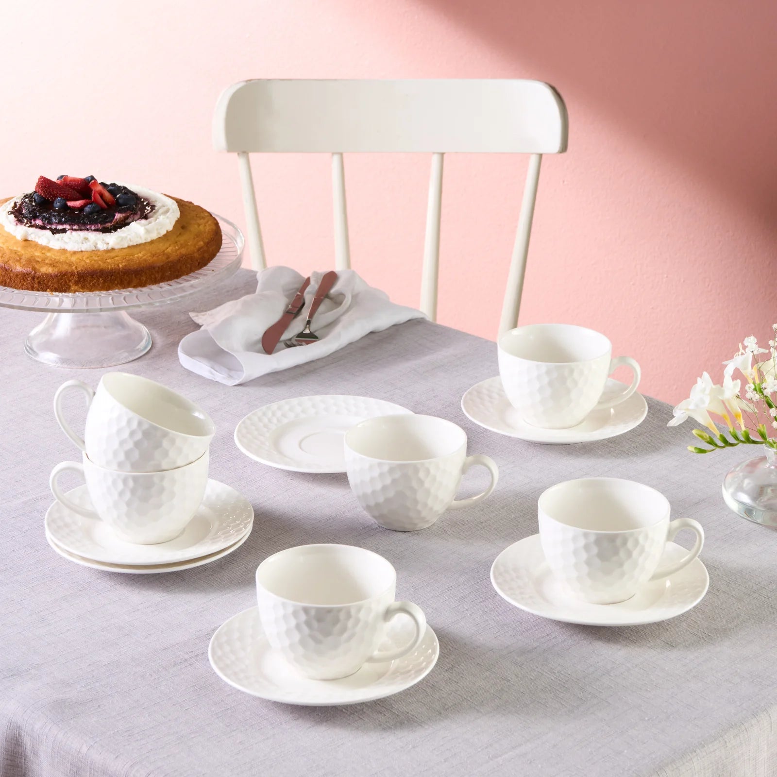 Karaca Nora Embossed Teetassen-Set für 6 Personen, 220 ml