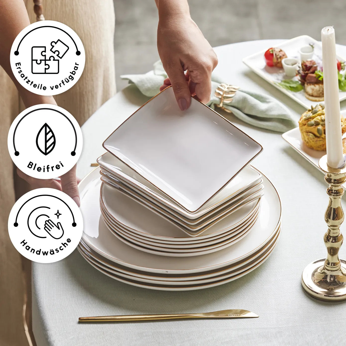 | Product Name | Karaca Santo für 6 Personen Geschirrset 18 Teilig, New Generation Bone, Weiß Gold |