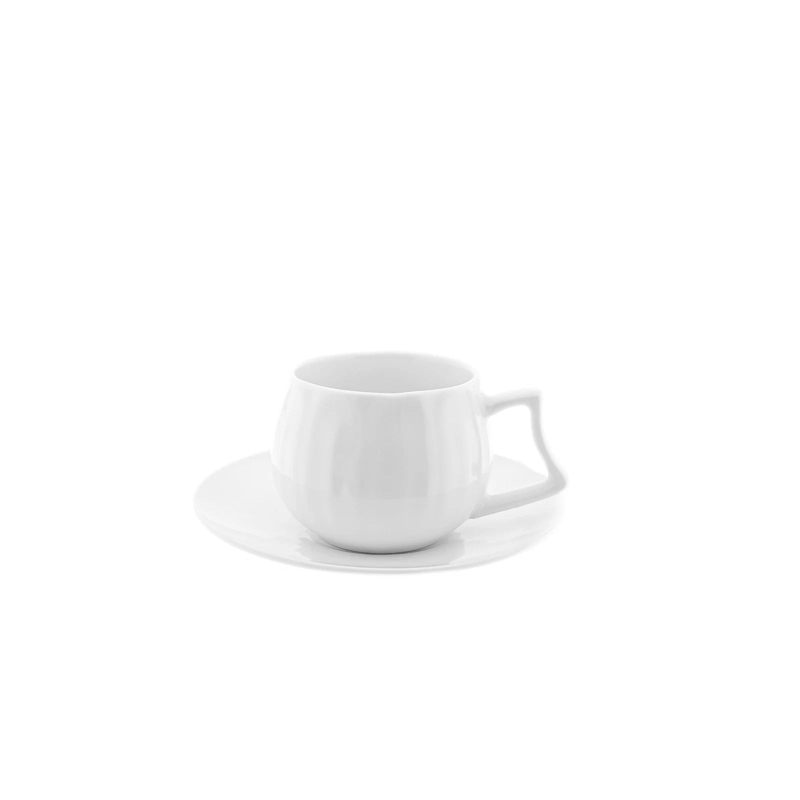 Functionally, this set is designed to serve hot beverages such as coffee, tea, or espresso. The saucer provides stability, helps prevent spills, and can also be used to serve sugar or cream. Its elegant white design can pair with various table styles.